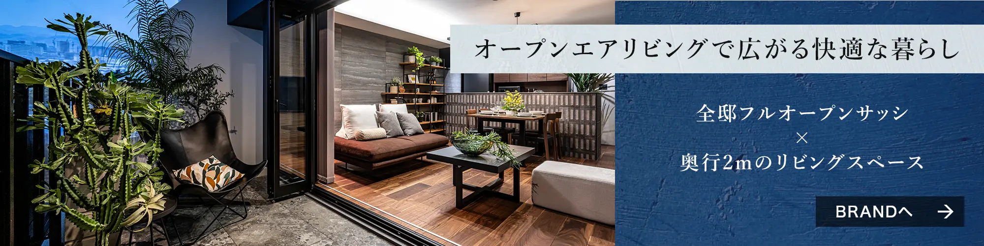 LDKと奥行き2mのワイドなオープンエアリビングを仕切るのは、フルオープンサッシです。