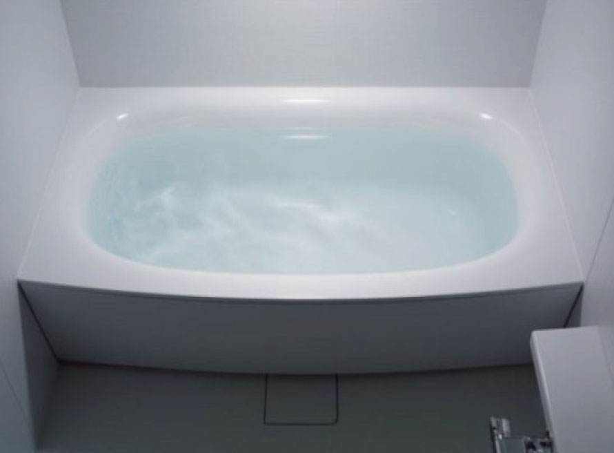 浴槽の内側はエッジがなく、入るとお湯が歓迎して、身体に流れ込むような感覚。張った一枚布に水を溜めて沈み込むような丸みが印象的です。