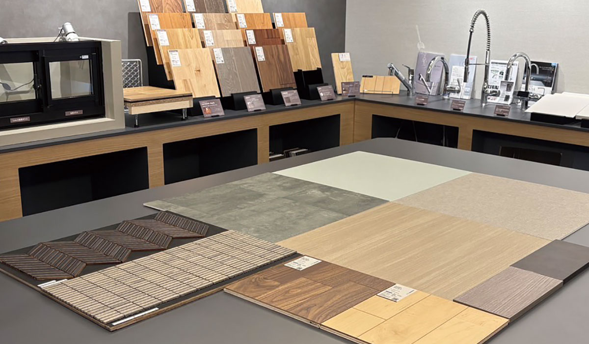 水の表面張力を壊す効果で乾きやすい床。同一方向にそろうグリッド加工でお掃除もしやすくなりました。