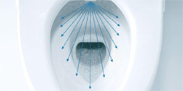 渦を巻くような水流とフチがない便器で汚れにくくお掃除ラクラク。