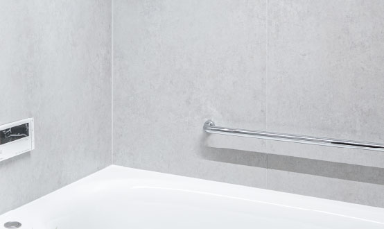 浴室の壁は、汚れにくい材質でお掃除もさっとひと拭き。市販のマグネット収納を使用することも可能です。