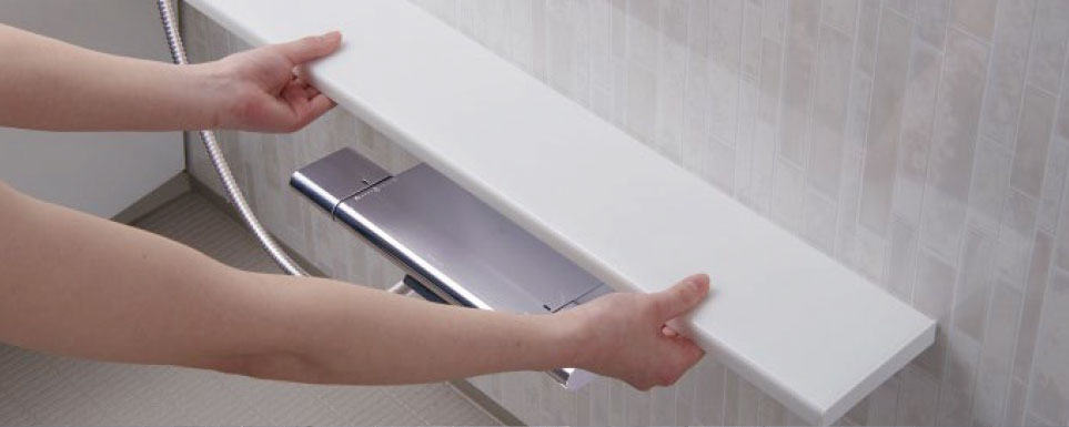 着脱可能で丸洗いできるカウンター。カウンターを外すことで、洗いにくい壁や床もラクな姿勢で洗えます。