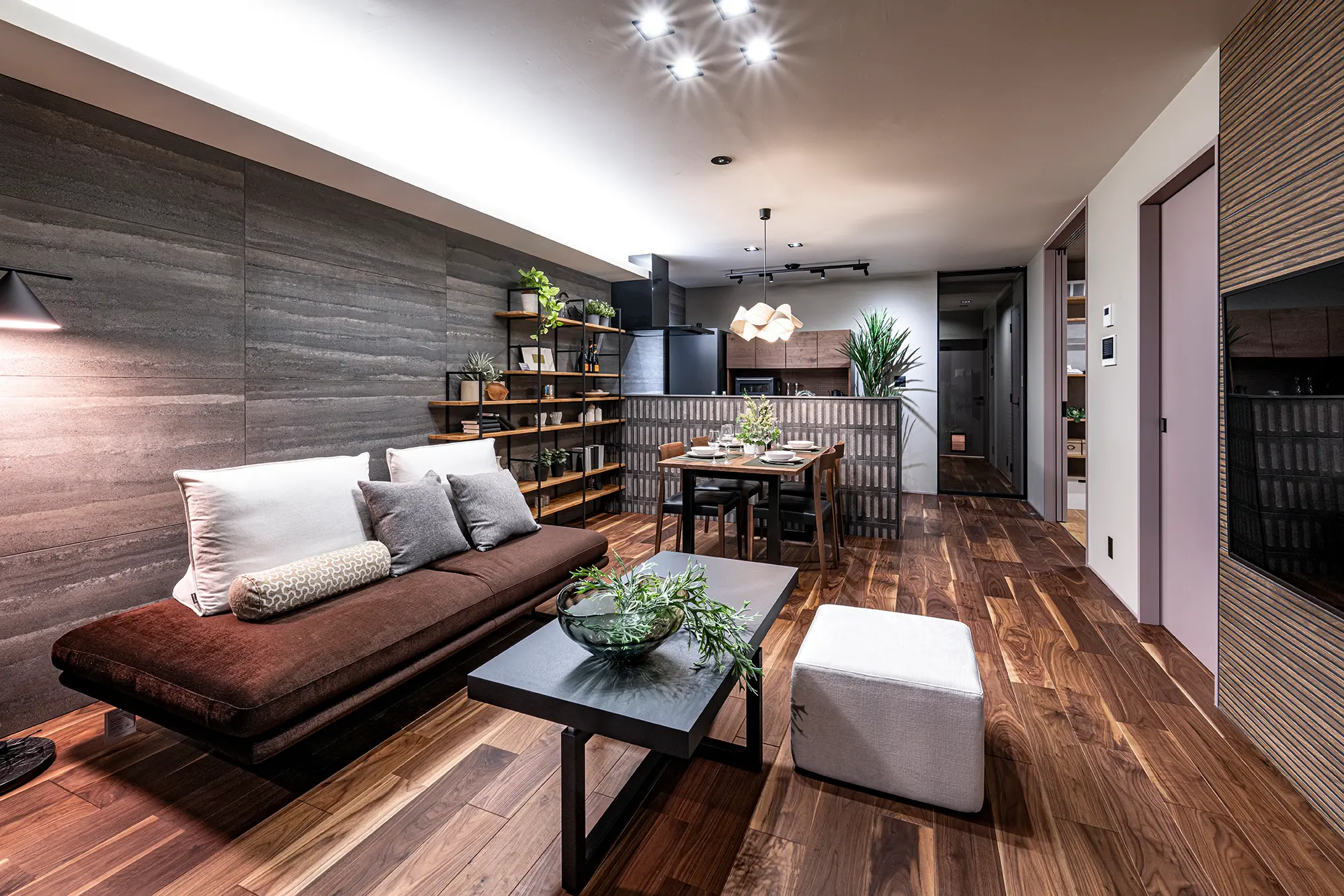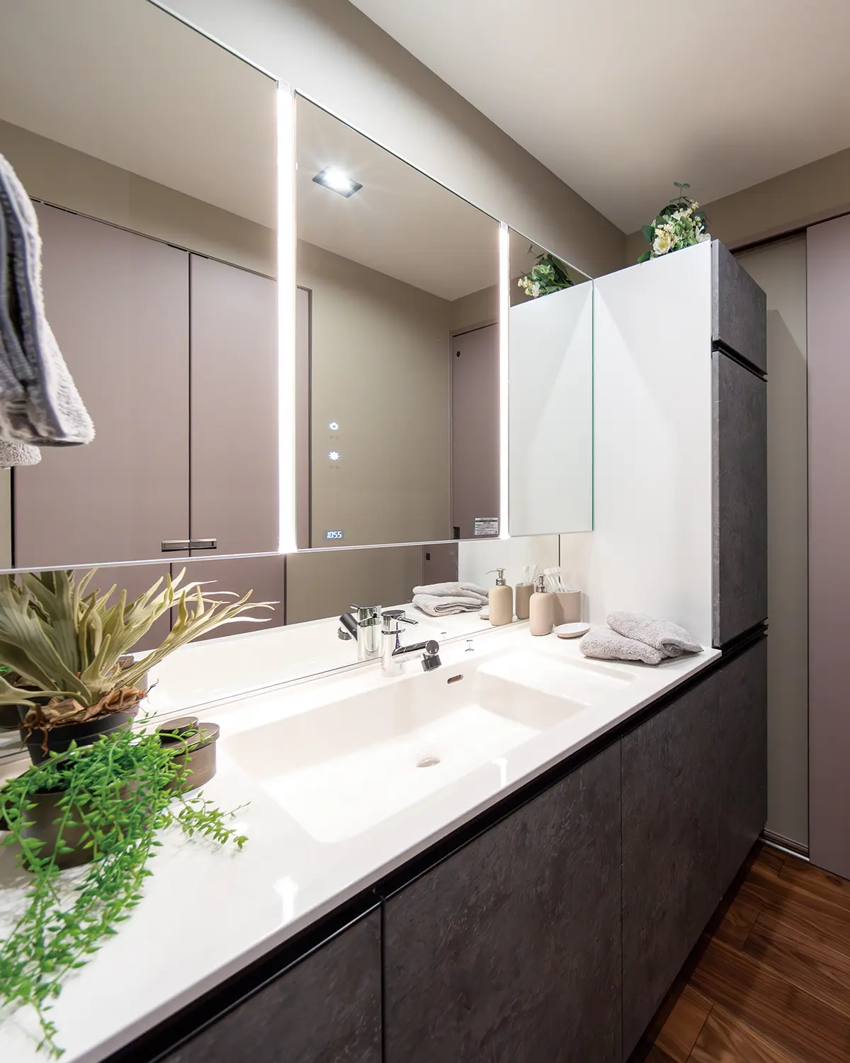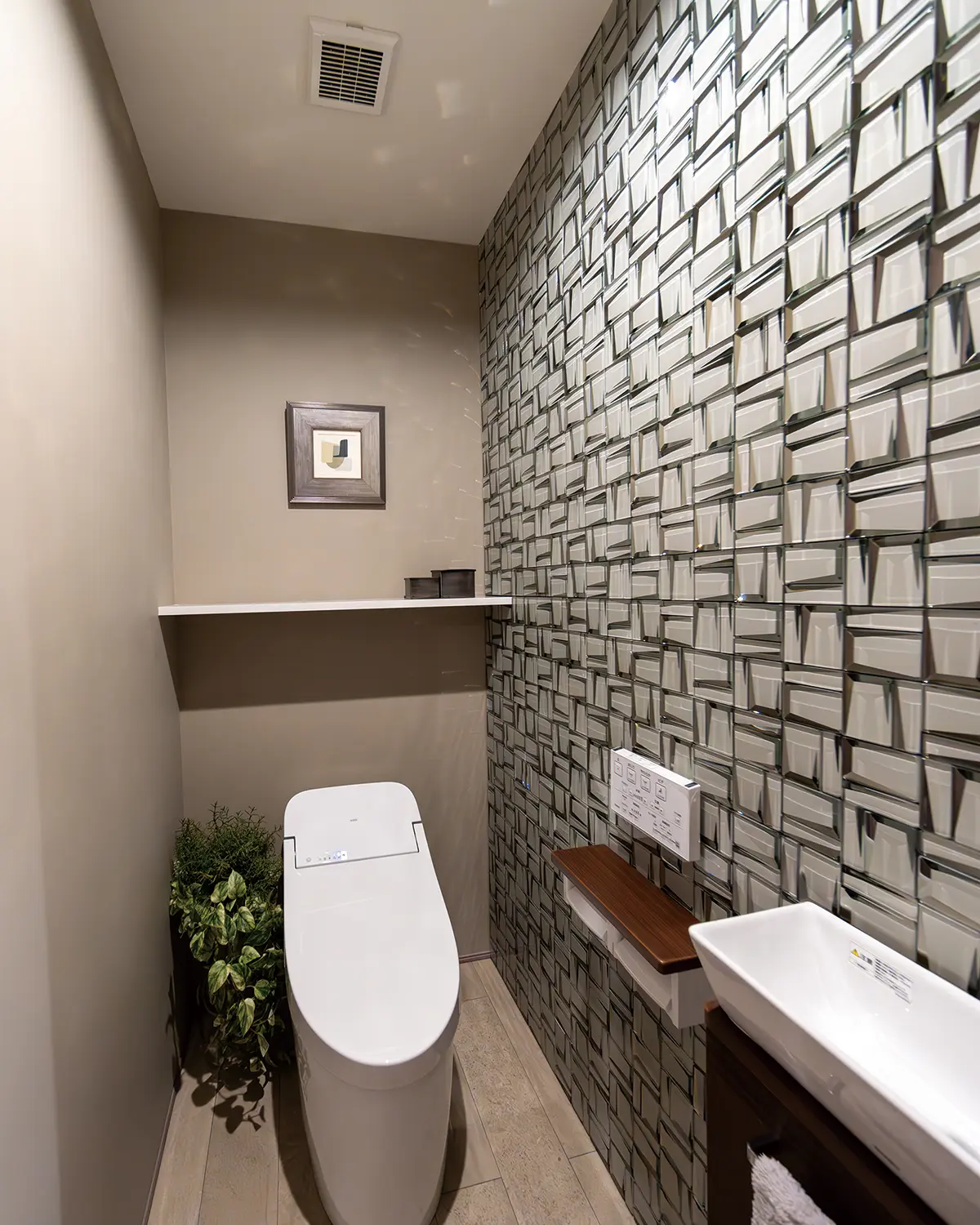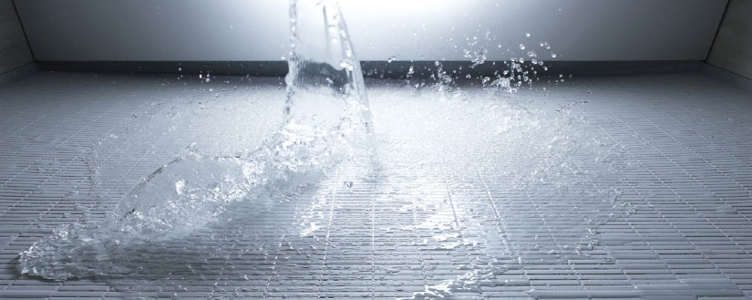 水の表面張力を壊す効果で乾きやすい床。同一方向にそろうグリッド加工でお掃除もしやすくなりました。