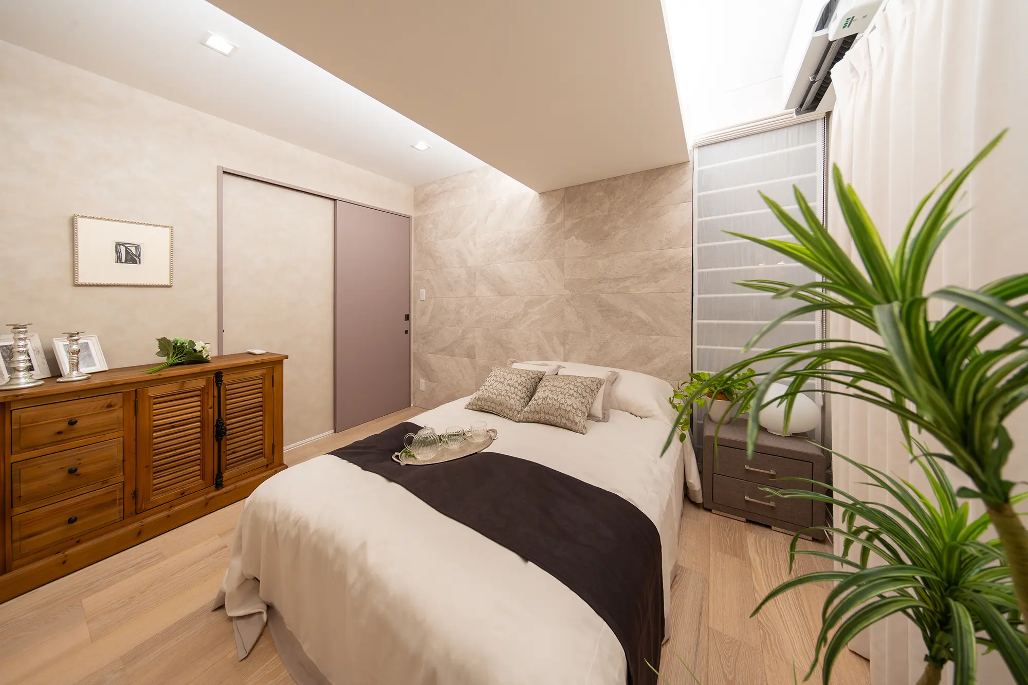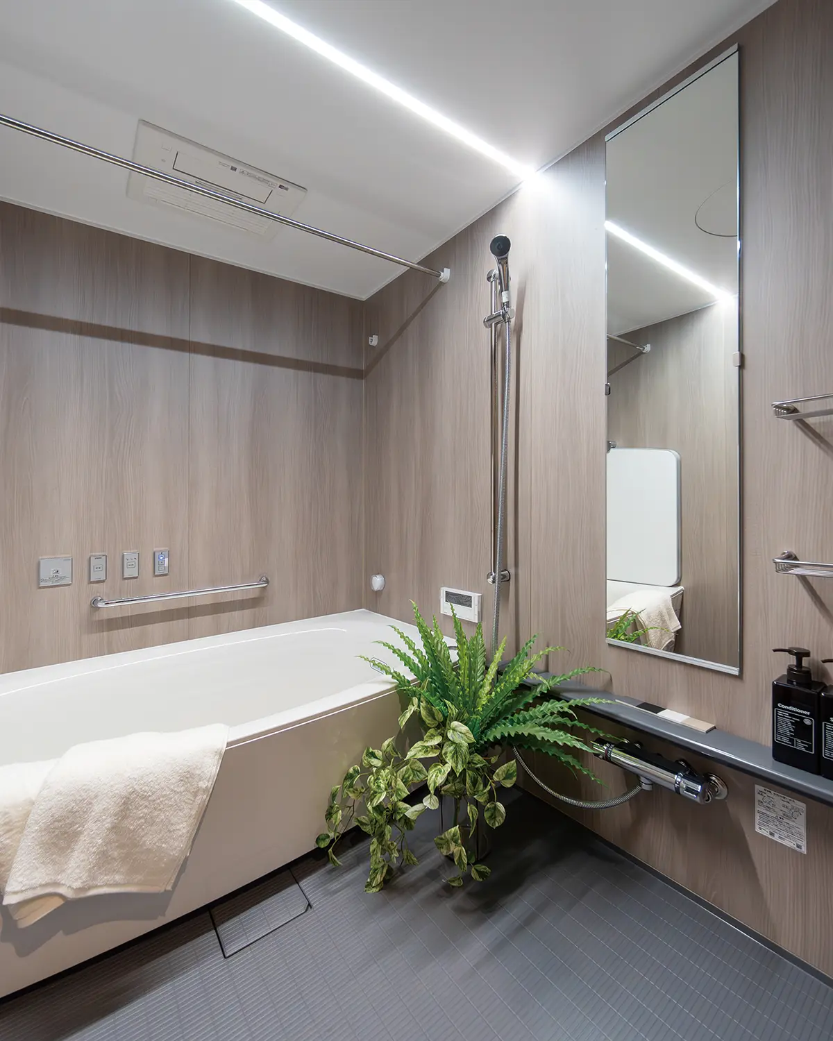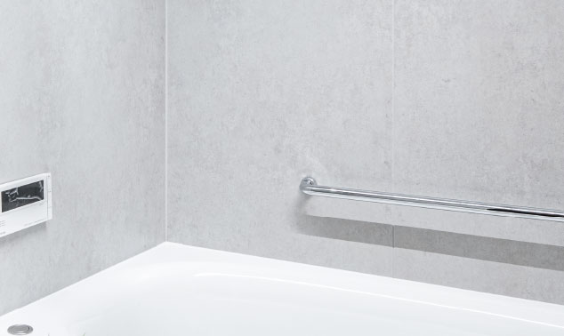 浴室の壁は、汚れにくい材質でお掃除もさっとひと拭き。