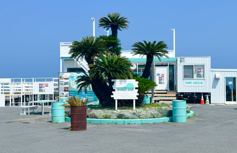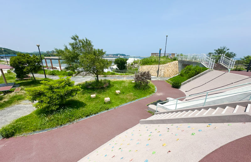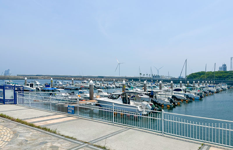 若松北海岸の美しい海に面した、プレジャーボートの交流の拠点。人工磯や釣り桟橋、多目的広場が整備されており、釣りや海辺の散策などが気軽に楽しめ、休日には多くの人が海と親しむ穏やかなひとときを過ごしています。また、近くには直売所 「海と大地」 では、脇之浦漁港で水揚げされた新鮮な魚介、若松産のキャベツやトマトなど地元農家による朝採れ野菜が並びます。店食堂コーナーでは刺身や海鮮丼が味わえるほか、「かき小屋」では海鮮や肉類のBBQも楽しめます。