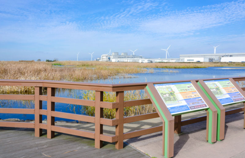 約41haの敷地に、40年以上かけて自然が自生した日本最大級のビオトープ。湿地、草原、淡水池など多様な生態系が広がり、約800種もの動植物が確認されています。観察デッキや野鳥観察小屋では、水生昆虫や絶滅危惧種の鳥、カヤネズミなどを間近に観察可能。家族や自然愛好者が一日中学びと癒しを楽しめる環境です。