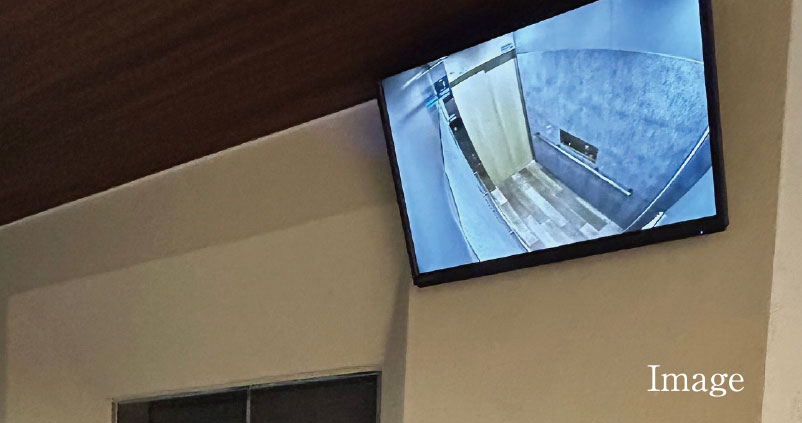1Fエレベーター乗り場にディスプレイを設け、かご内防犯カメラの映像を映し出します。犯罪およびいたずらの抑止効果を高め、安心して利用することができます。