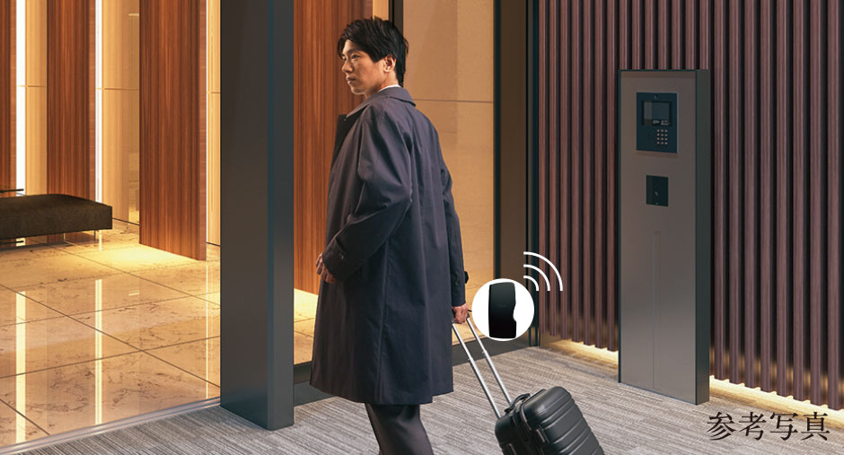 先進のハンズフリーキー「Tebraキー」はポケットに入れたまま、ハンズフリーで共用エントランスのオートロックを、解錠できます。更に約42億以上の豊富なキーコード違いを持ち、高いセキュリティ性を確保しています。