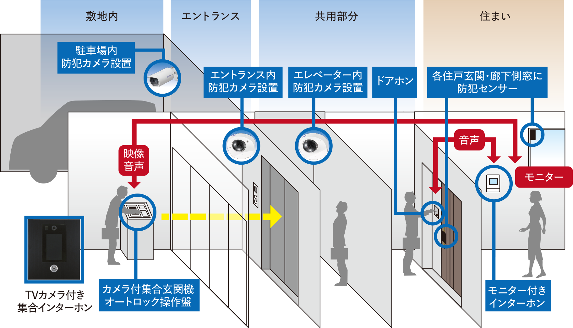 防犯カメラやオートロックシステムをはじめとする、安心・安全のセキュリティ。