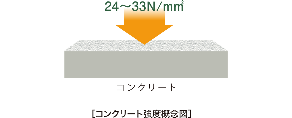 コンクリートの強さはN(ニュートン)という単位で表されます。「アーティックス若松駅ソルディア」は24〜33N/m㎡です。※33N/m㎡の場合、1㎡当り3300tの負荷に耐えられます。